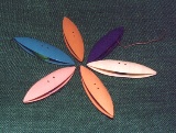The shuttle on the right an the needle are made of horn (of a cow). The other shuttle is made of rose