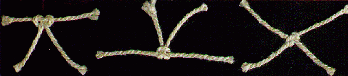 (Wk). Den fertigen Knoten sehen Sie in der rechten Abbildung. Er findet immer dann Anwendung, wenn eine Arbeit fixiert werden soll, d. h. am Anfang wie am Ende einer Arbeit und beim Anknüpfen eines neuen Fadens (Arbeit mit 2 oder 3 Schiffchen).