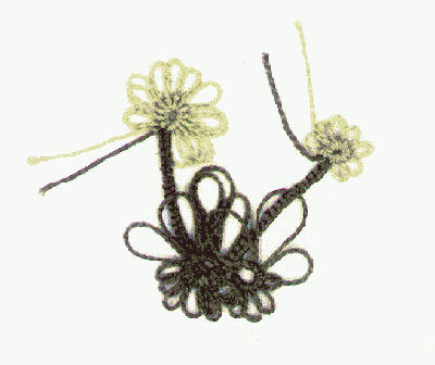 anschließend den zweiten Stengel und die zweite Blüte und schließt ab mit einem Kreativknoten (KrK). |